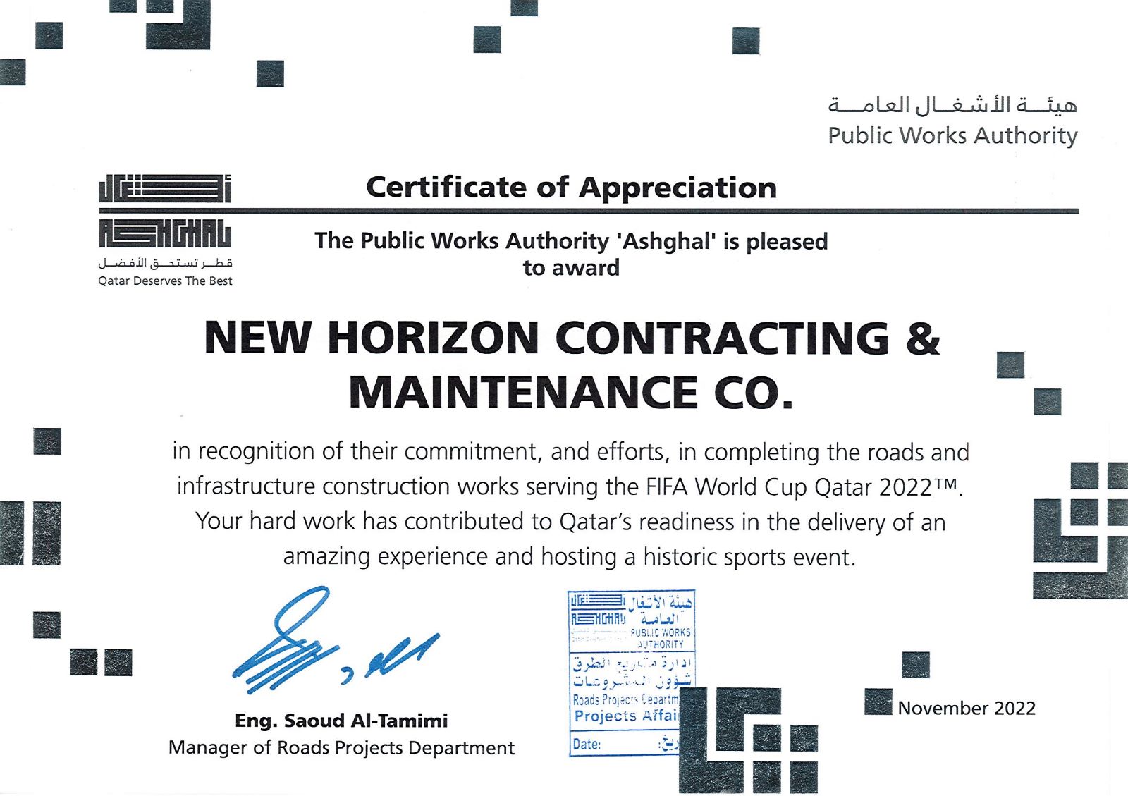 Established in 2002 in Qatar. New Horizon had provided many of the country’s large infrastructure and road works projects, assuring the best quality and building trust with public and private Clients to meet and accomplish their vision.